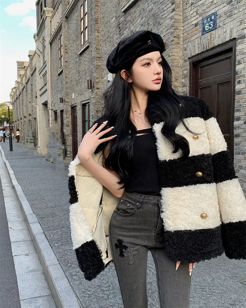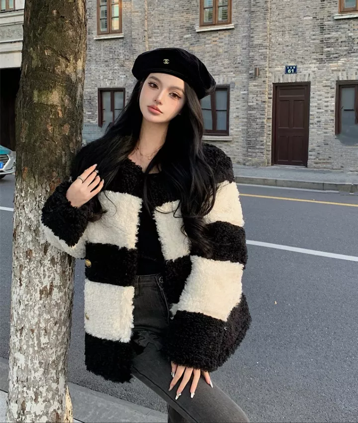 Giacca Cappotto Pelliccia Donna Ecologica Sintetica Morbida Bianco Nero 43764