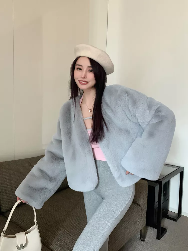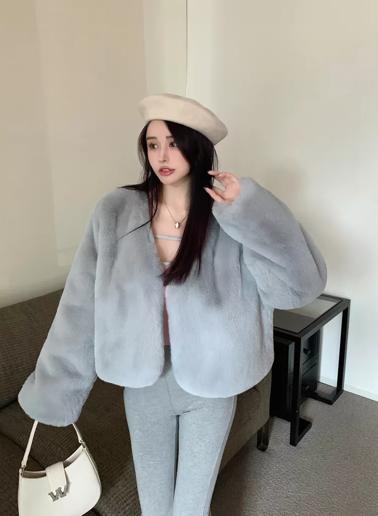 Giacca Cappotto Pelliccia Donna Ecologica Sintetica Morbida Grigio 43962