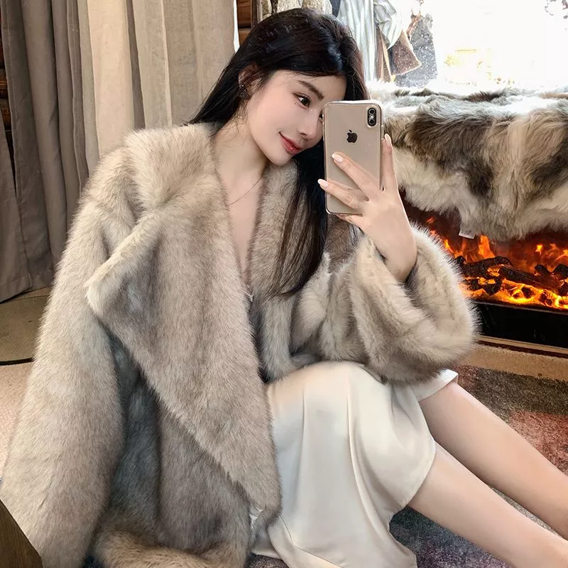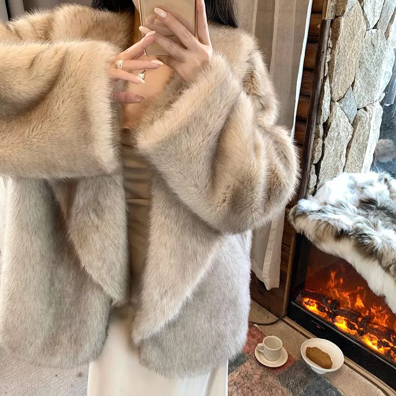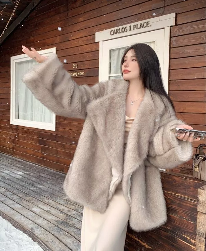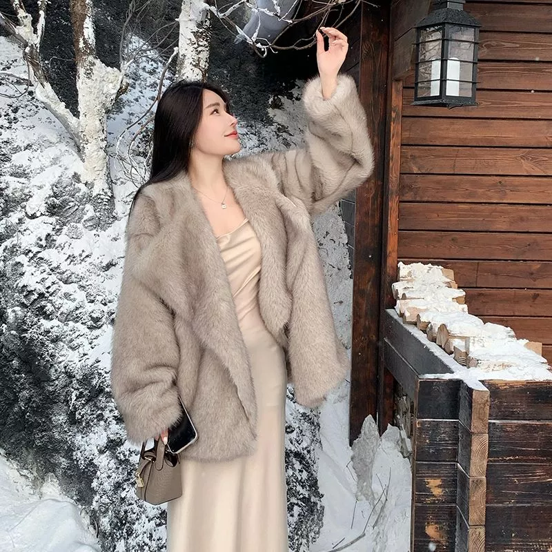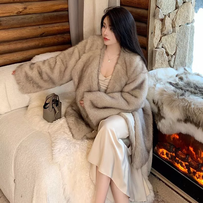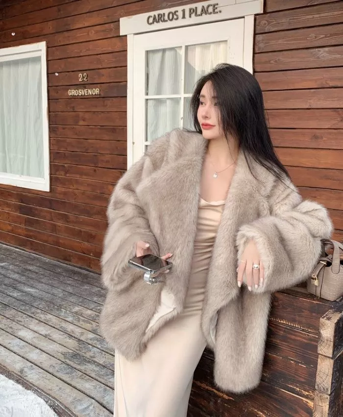 Giacca Cappotto Pelliccia Donna Ecologica Sintetica Morbida Lunga Grigio 28740