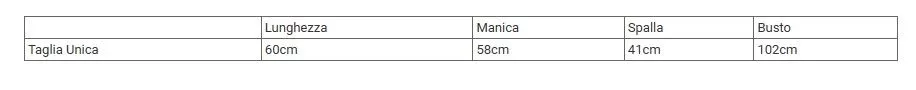 | Taglia Unica | 60cm | 58cm | 41cm | 102cm |