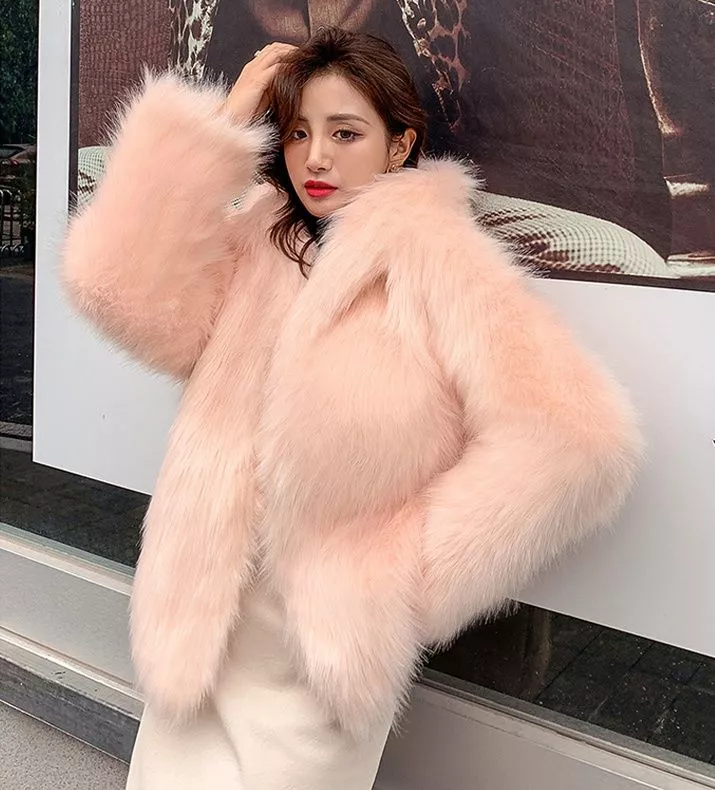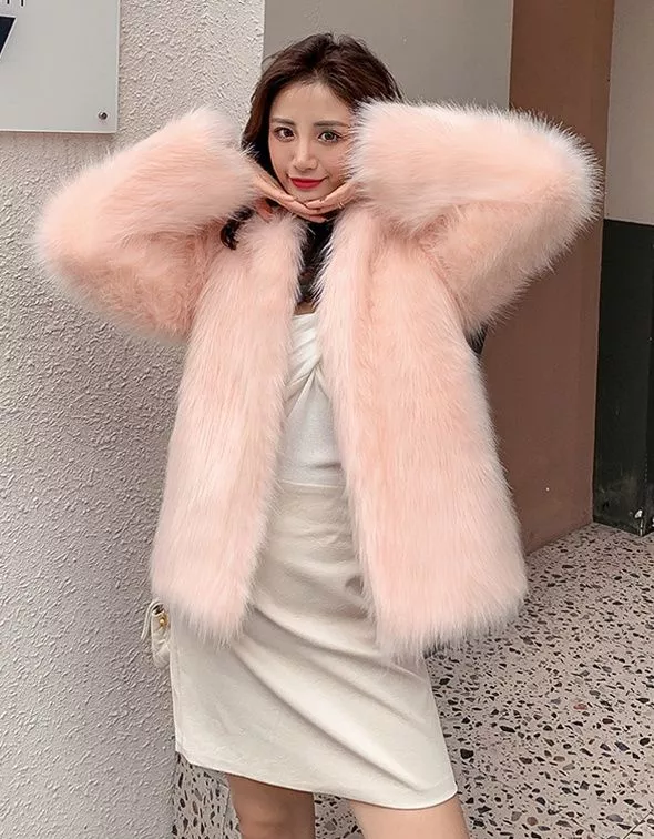 Giacca Cappotto Pelliccia Donna Ecologica Sintetica Rosa Cappuccio 83197