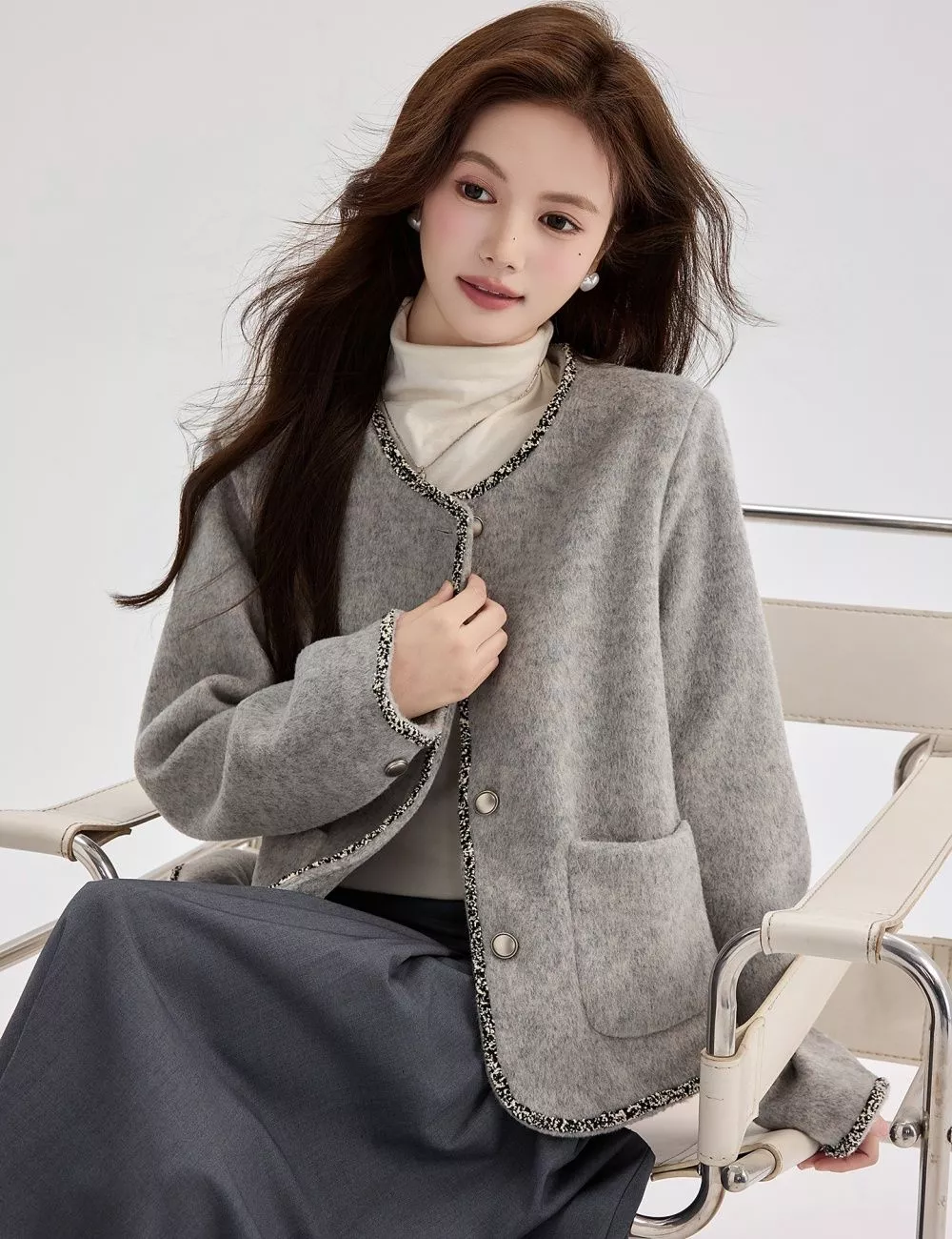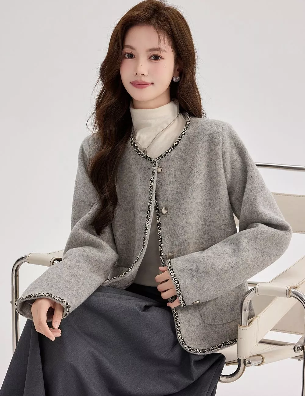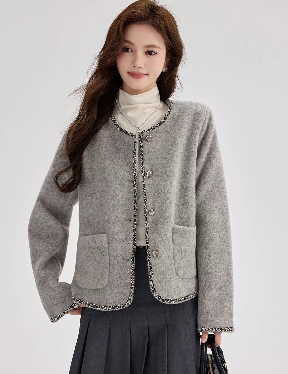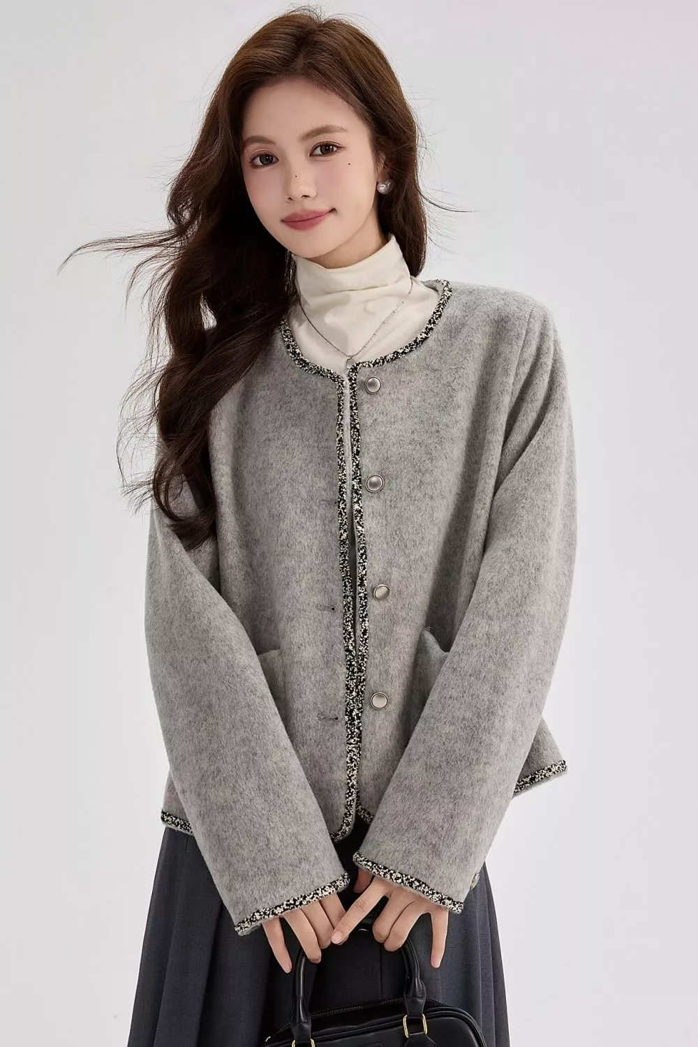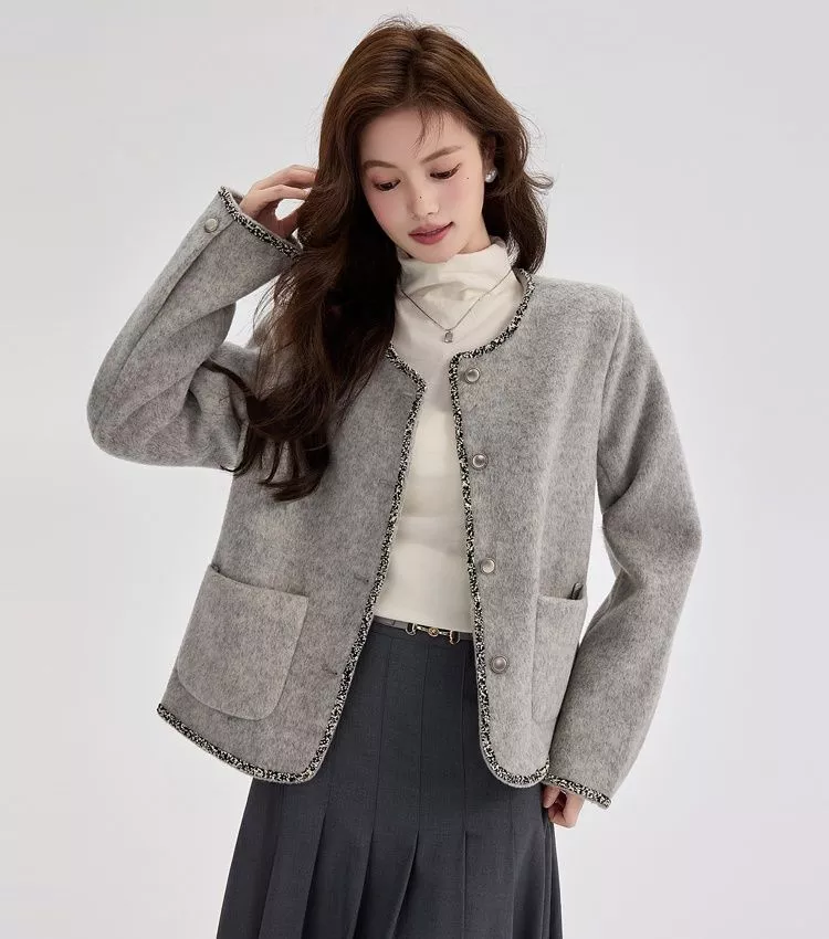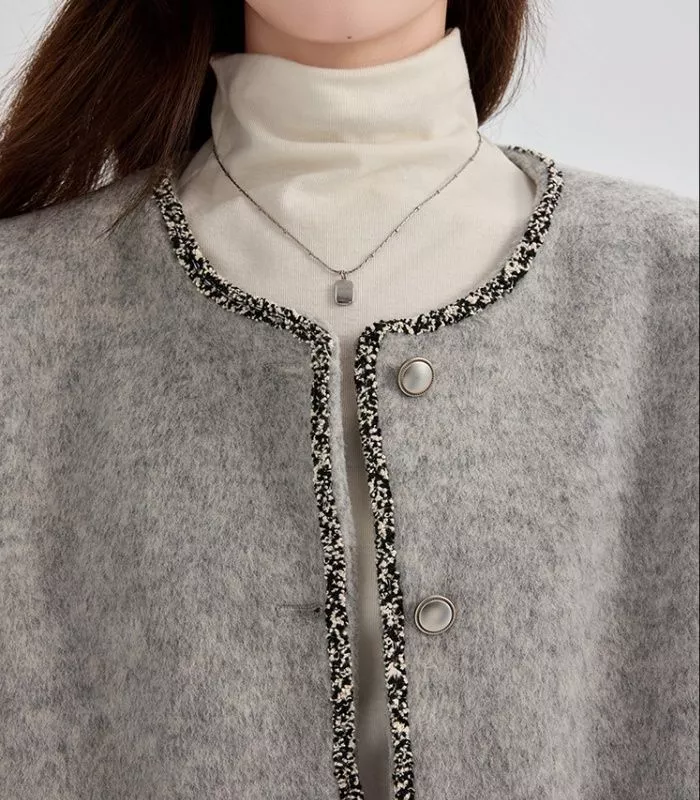 Giacca Corta Grigia In Cappotto Con Bottoni E Profili Decorati CF57552