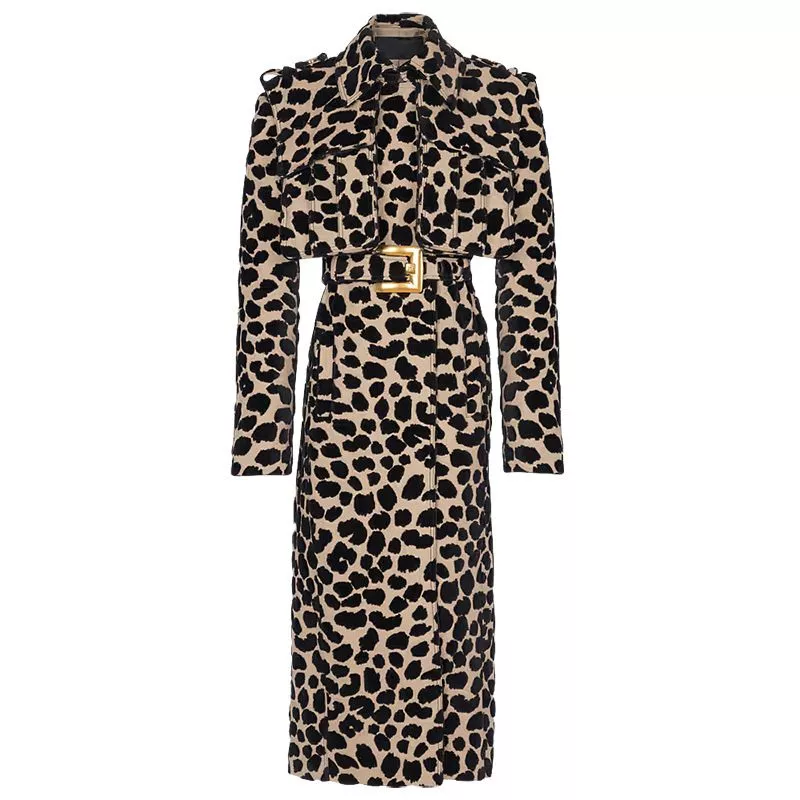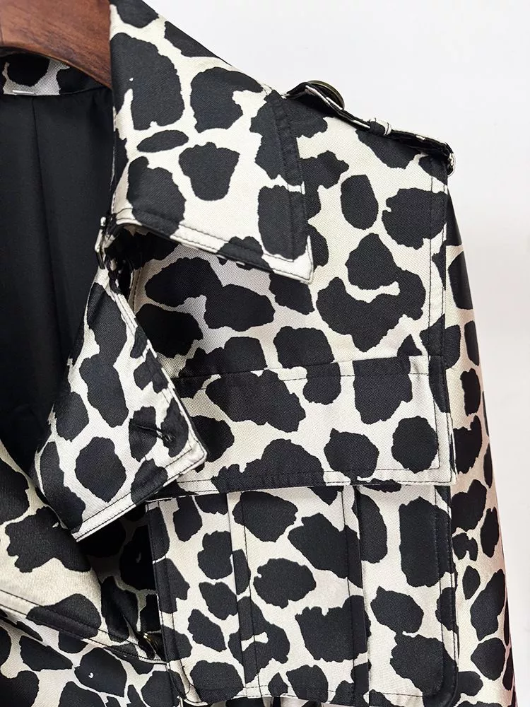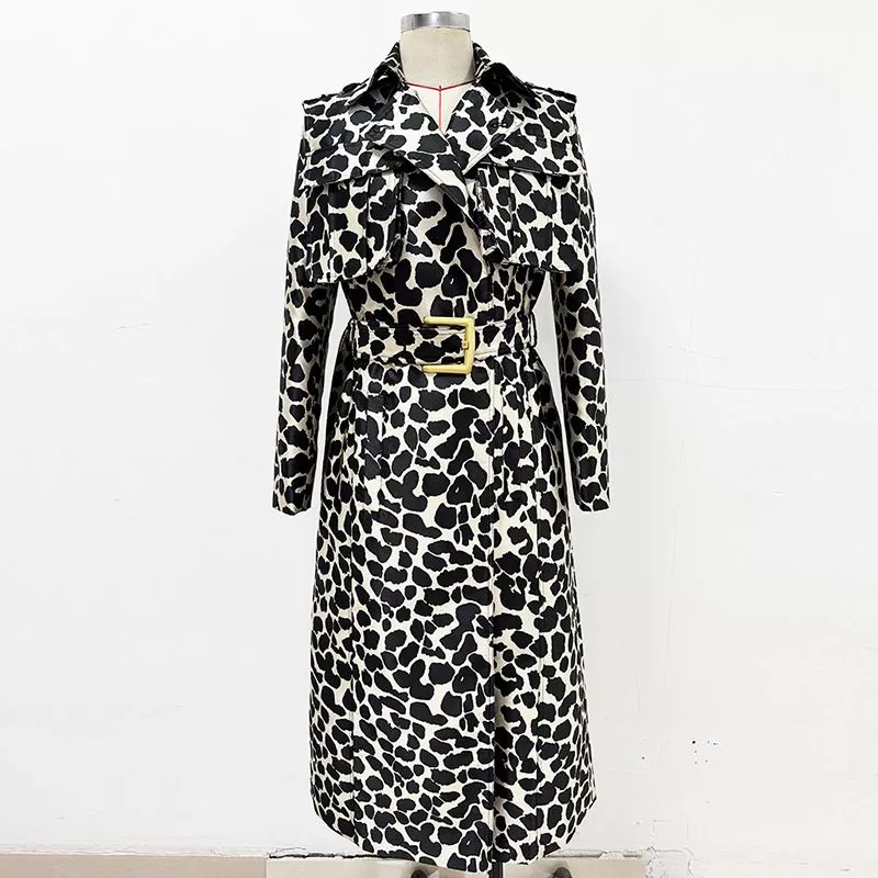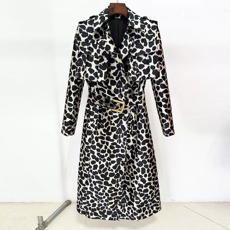 Questo cappotto lungo con motivo pantera e cintura con fibbia dorata nasce per creare un look deciso, elegante e d’impatto. La linea strutturata avvolge la figura con un effetto slanciato, mentre la texture morbida valorizza lo stile senza appesantire. Le spalle modellate, le pattine frontali decorative e la cintura regolabile definiscono il punto vita, creando un outfit raffinato e contemporaneo. Un capo caldo e ricercato, ideale per chi vuole distinguersi con una presenza sofisticata nelle giornate più fredde.