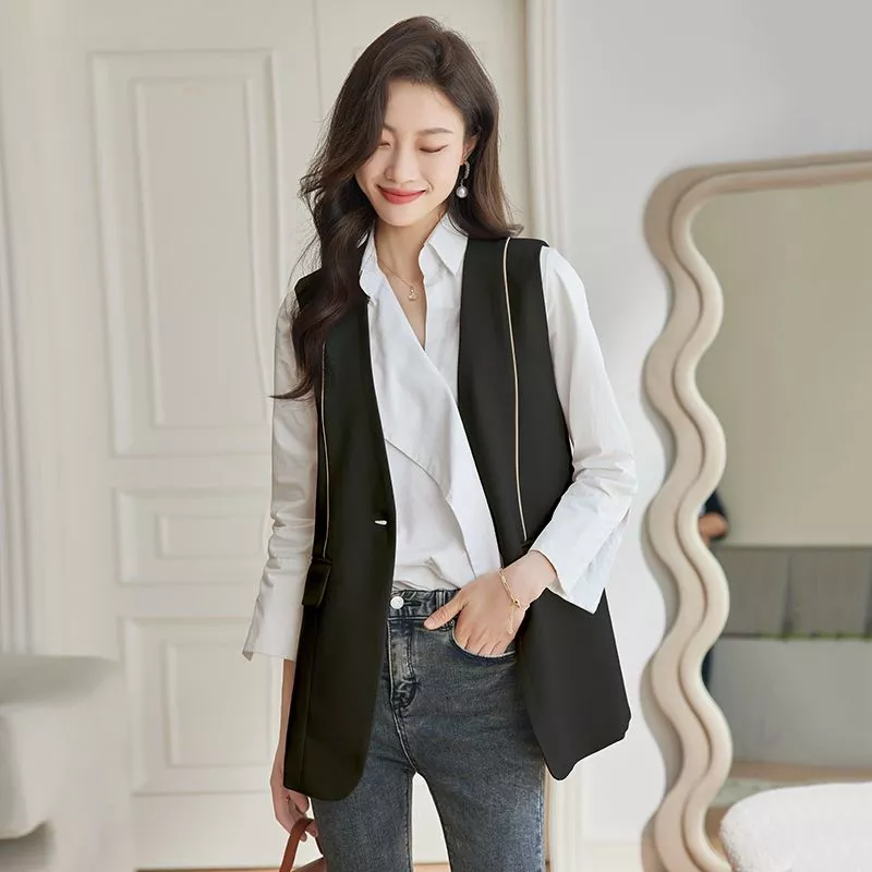 Giacca da Tailleur Blazer Gilet Donna Ufficio Slim Elegante Nero Over 78229