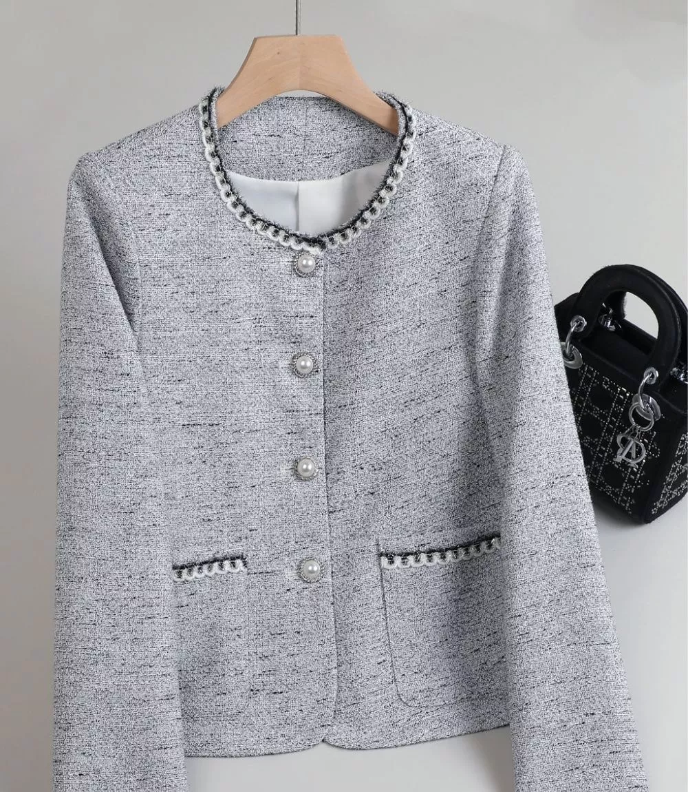 Giacca Donna Elegante Corta Grigio Bottoni Gioiello Outfit Ufficio CF66733
