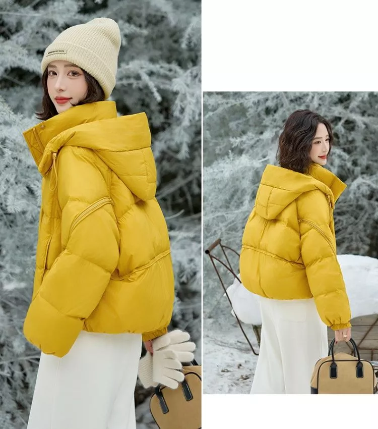 Giacca Donna Imbottita Corta Cappuccio E Zip Termica Invernale Giallo CF65435