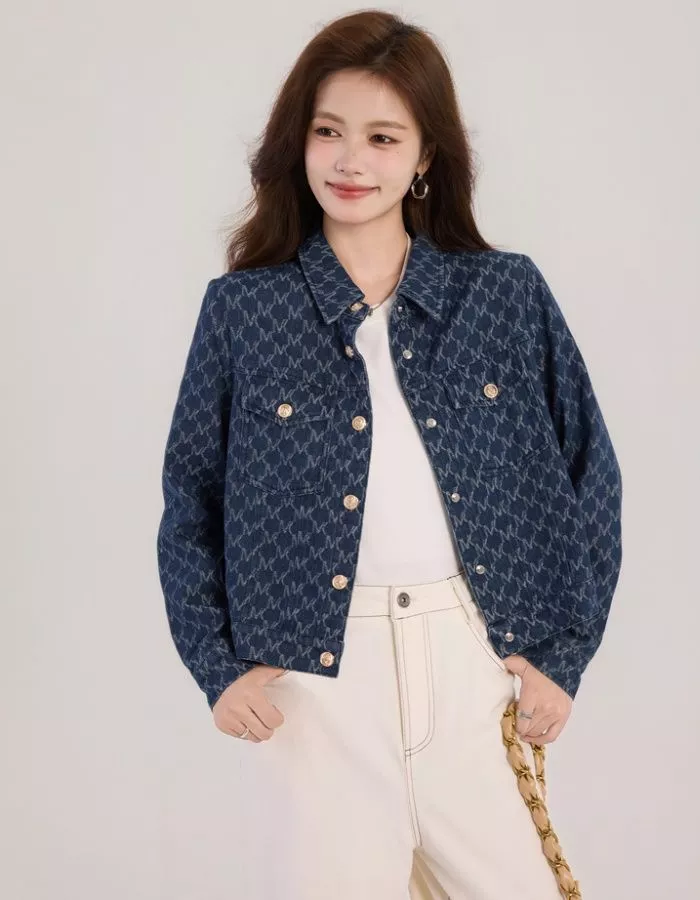Giacca da donna in jeans dal design compatto e curato, caratterizzata da una lunghezza corta che valorizza la figura e da una struttura ordinata. Il modello presenta colletto classico, abbottonatura frontale con bottoni decorativi e tasche applicate sul petto, offrendo un equilibrio tra stile casual e dettaglio ricercato. Ideale per outfit quotidiani, abbinamenti urbani e look di mezza stagione dal carattere deciso ma versatile.