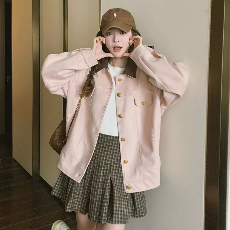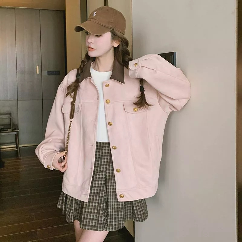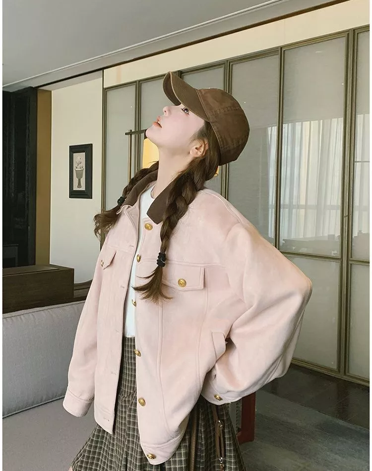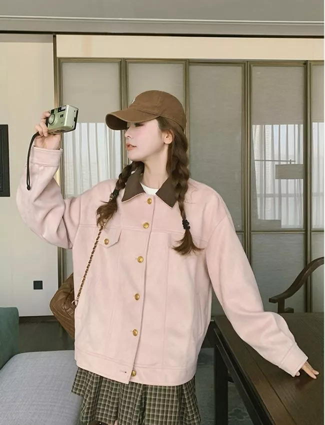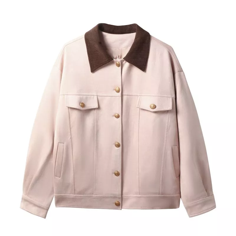 Giacca Donna Leggera Colletto A Contrasto Rosa Velluto Casual Elegante CF60628