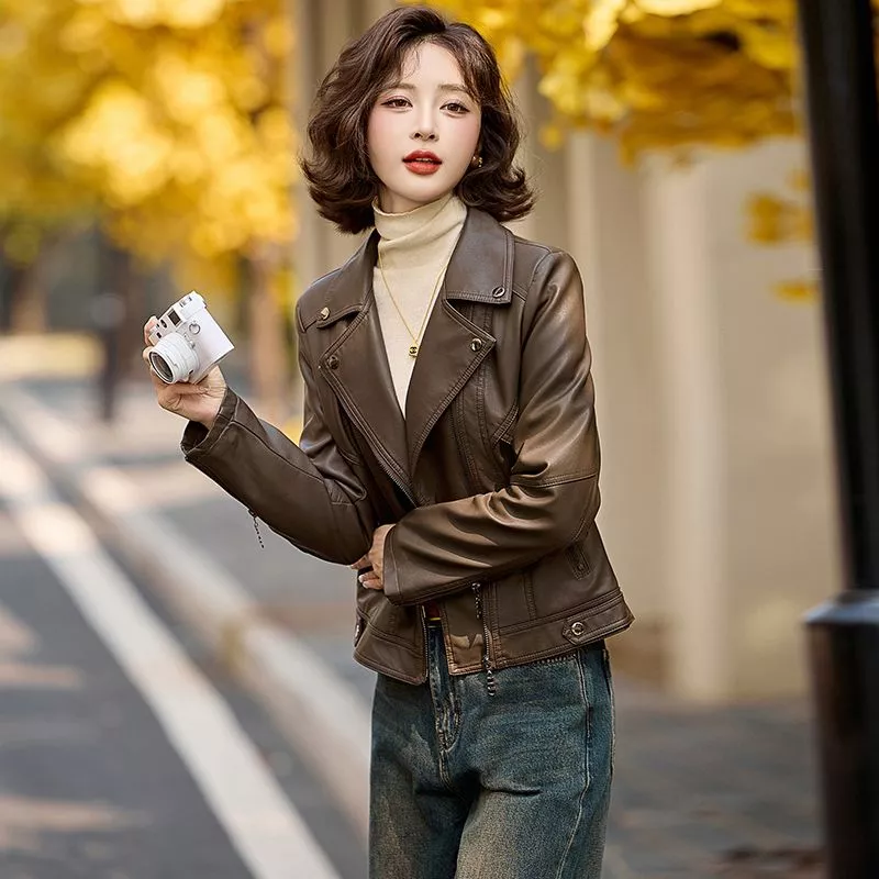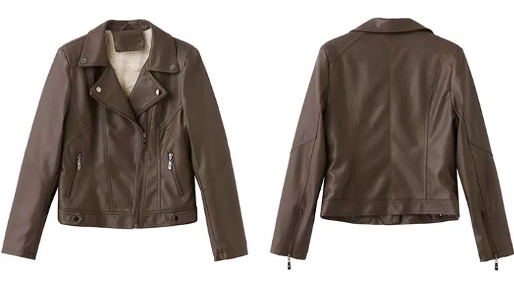 Giacca Donna Marrone Stile Biker Corta Con Zip E Interno Caldo Casual CF62941