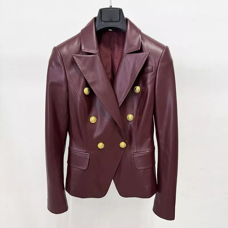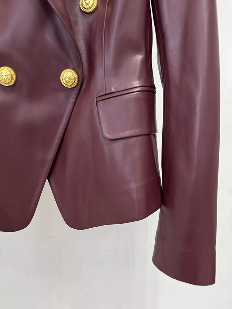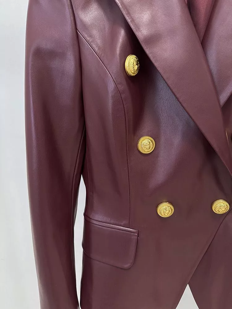 Giacca Donna Rosso Vino Doppiopetto In Pelle Sintetica Elegante CF64829