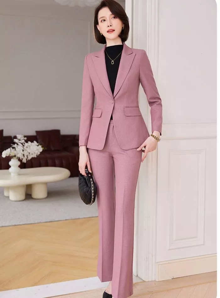 Completo Donna Giacca E Pantalone Rosa Raffinato Look Professionale CF61647