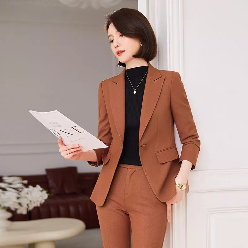 Completo Donna Giacca E Pantalone Arancione Elegante Stile Lavoro CF61647