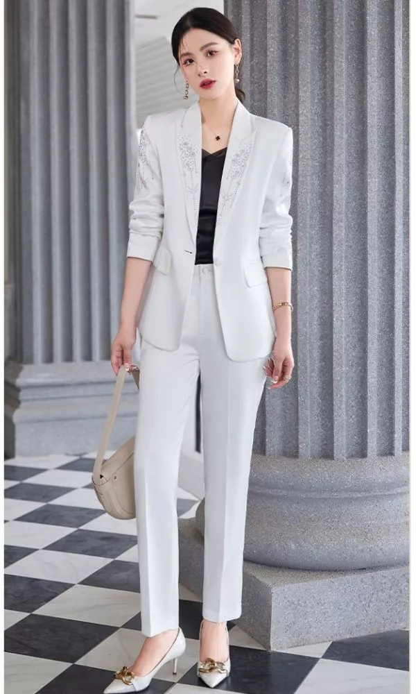 Completo Donna Bianco Elegante Giacca E Pantalone Slim Da Cerimonia CF61818