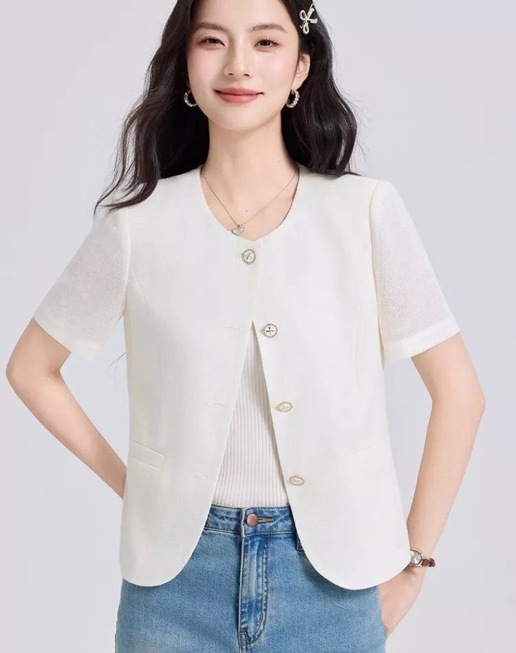 Giacca Elegante Donna Corta Manica Corta Blazer Leggero Albicocca CF68532