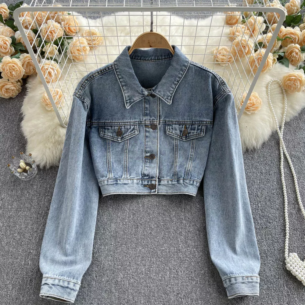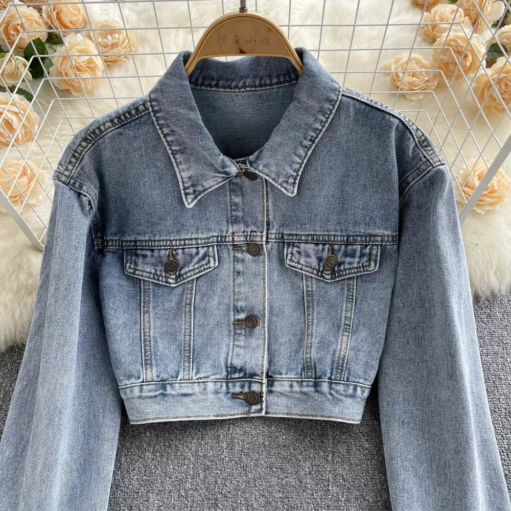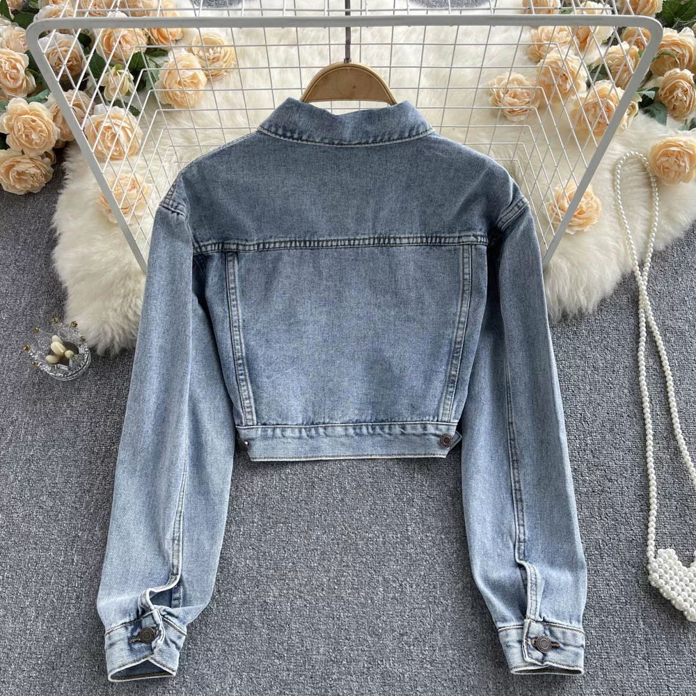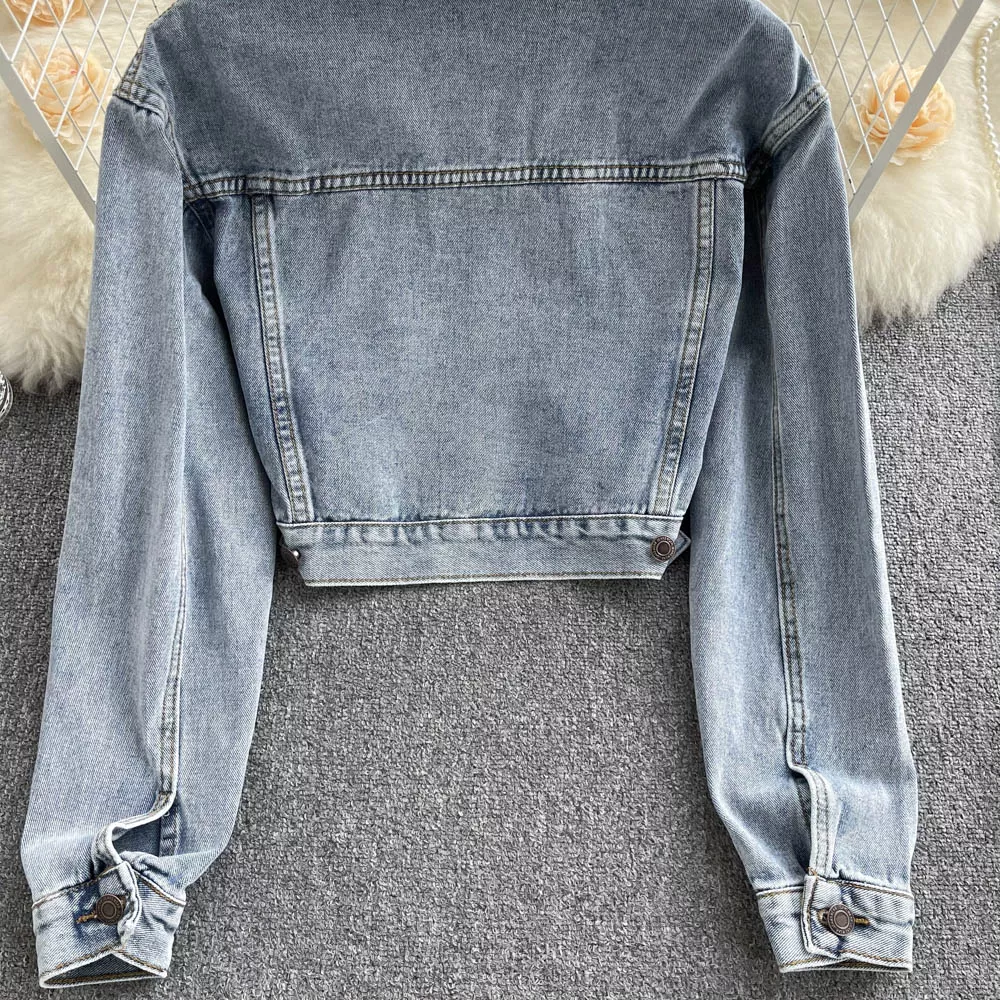 Giacca giubbino donna blu azzurro corto denim jeans bottoni slim 31903