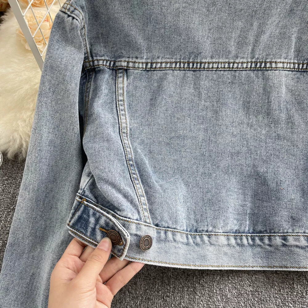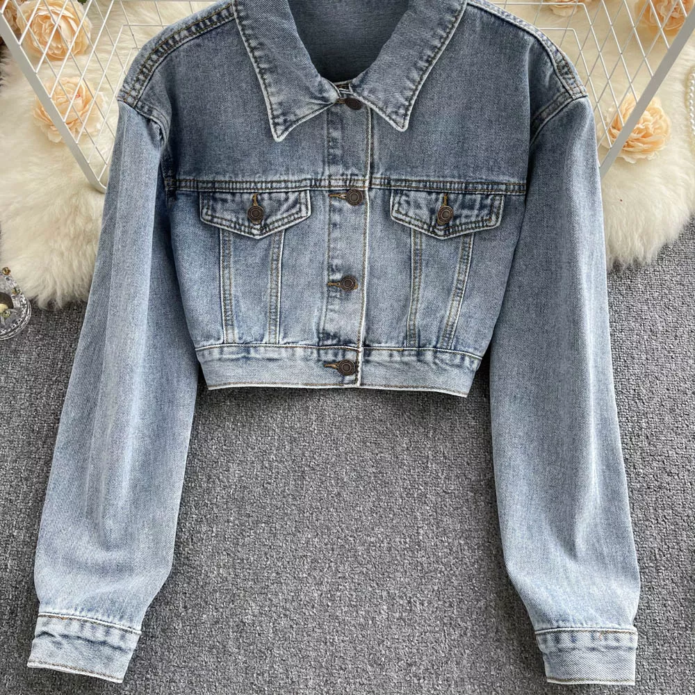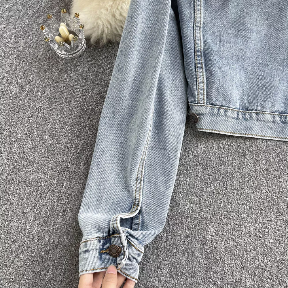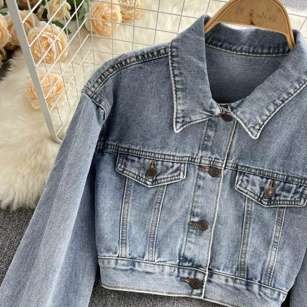 Giacca giubbino donna blu azzurro corto denim jeans bottoni slim 31903