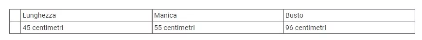 | 45 centimetri | 55 centimetri | 96 centimetri |