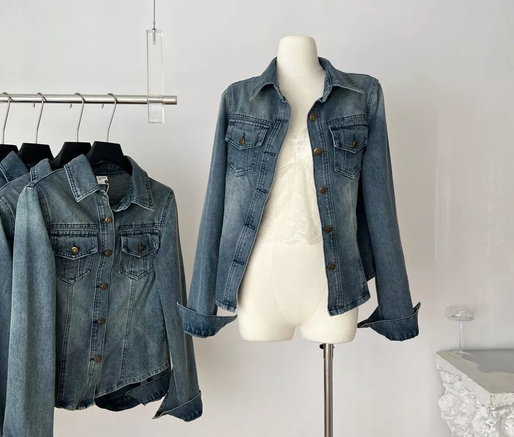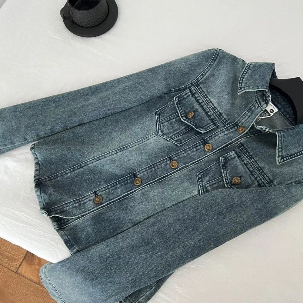 Giacca Jeans Denim Slim Fit Con Tasche E Bottoni Vintage Donna CF53531