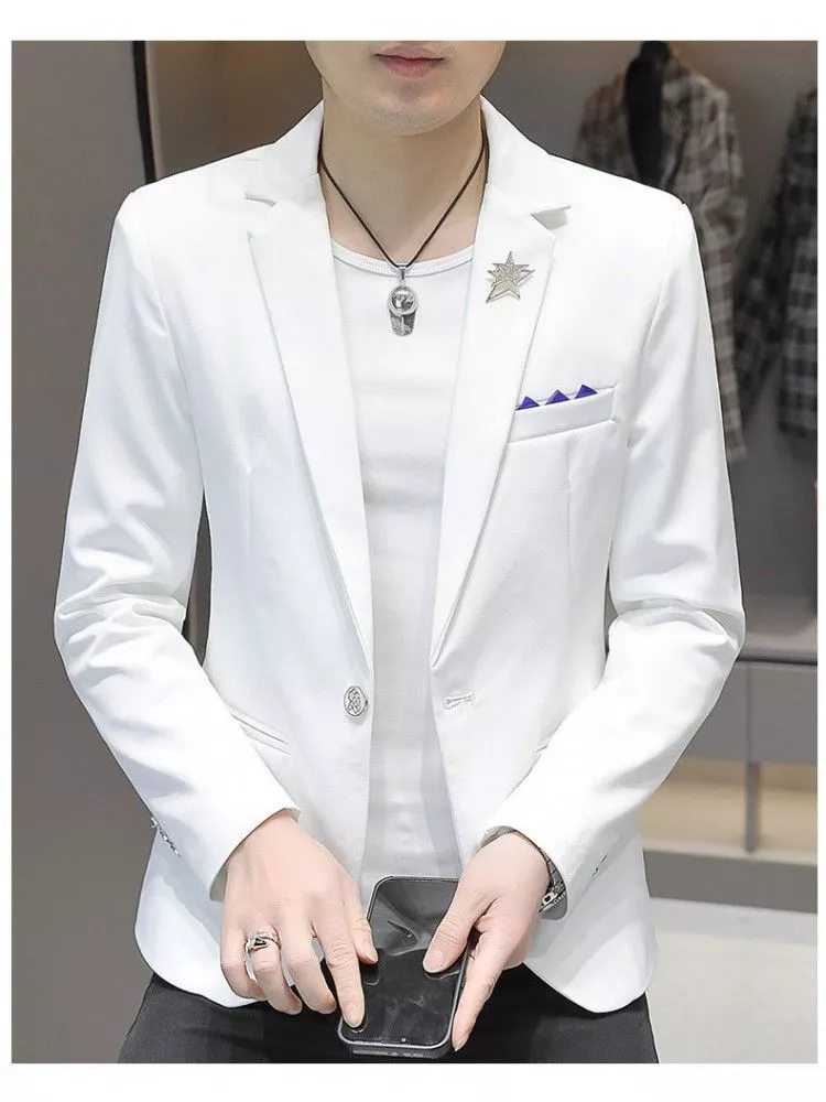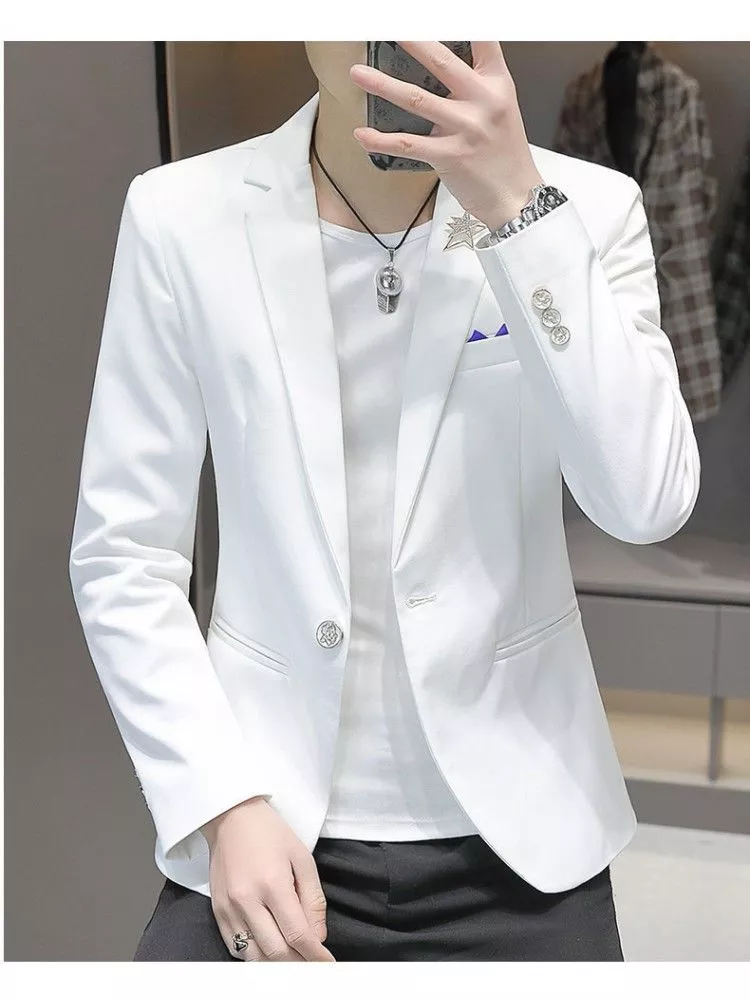 Giacca Smoking Uomo Elegante Bianca Slim Fit Bottoni Moda Uomo 071705
