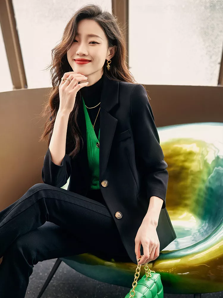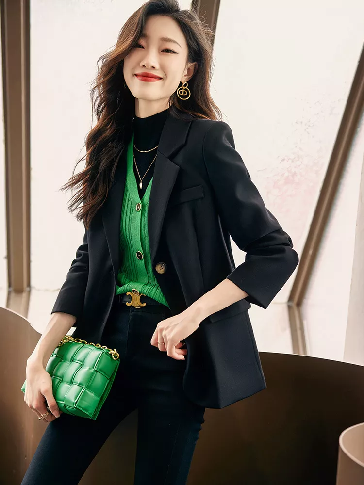 Giacca Tailleur Blazer Donna Spezzato Ufficio Slim Elegante Nero Over 44804