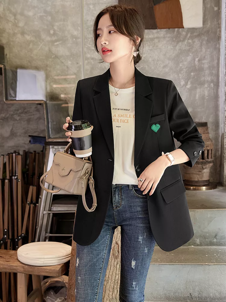 Giacca tailleur donna blazer spezzato ufficio nero over elegante slim 32209