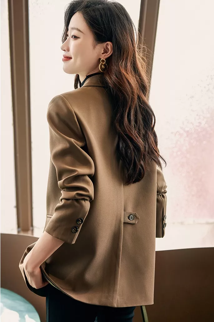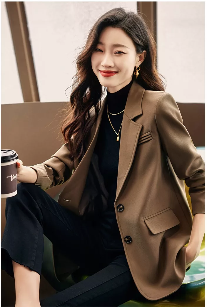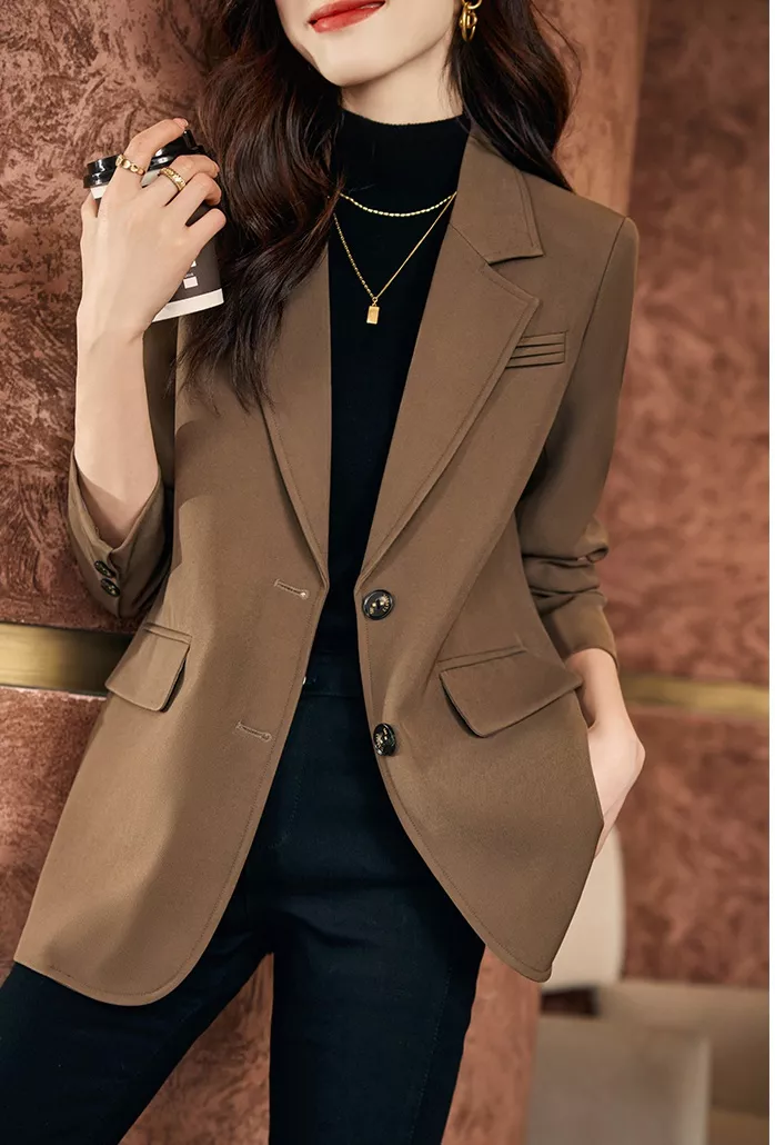 Giacca tailleur donna blazer spezzato ufficio over marrone elegante slim 32233