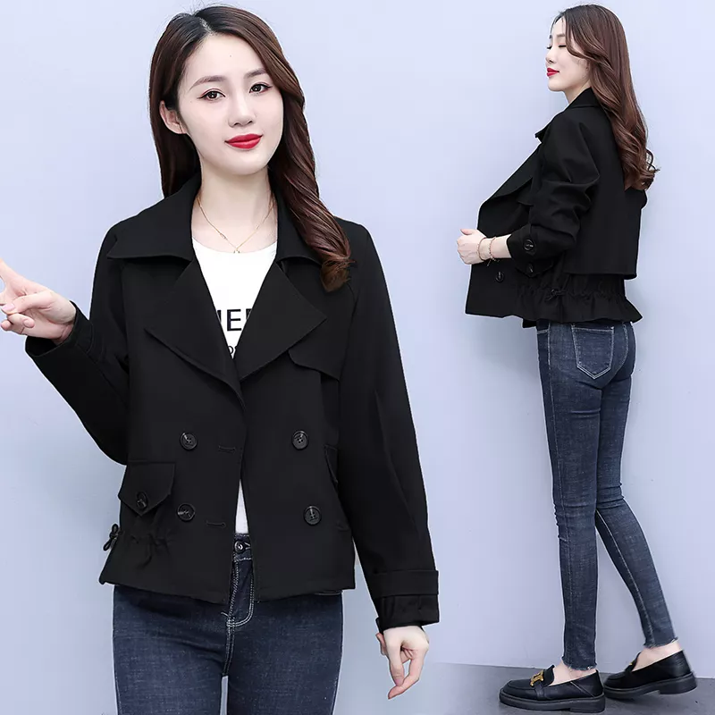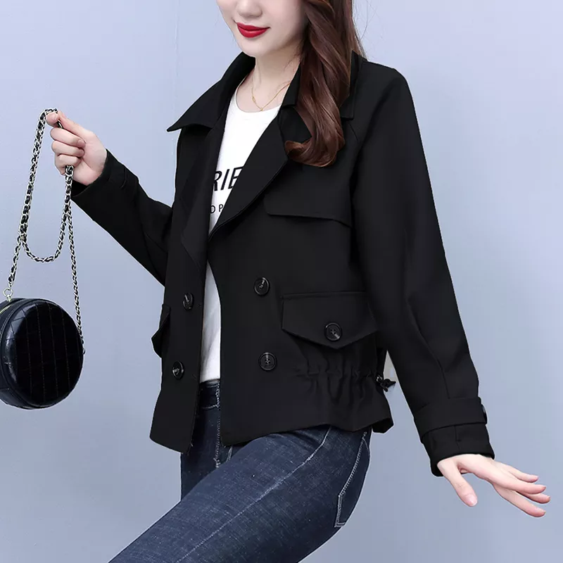 Giacca Trench Spolverino Donna Beige Nero Corto Slim Elegante 38514
