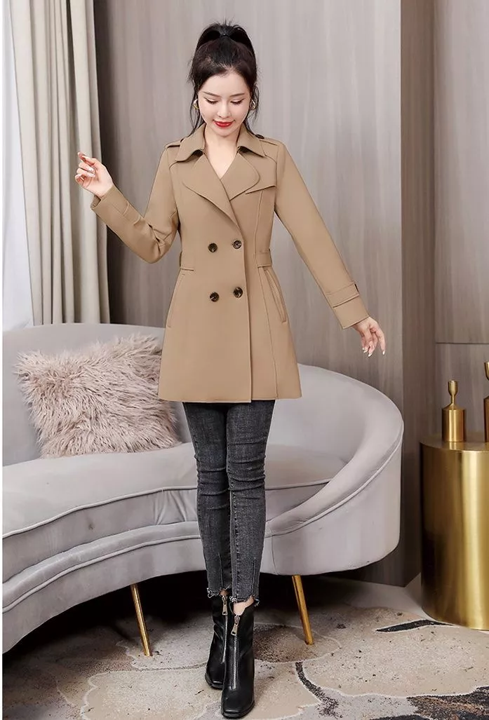 Giacca Trench Spolverino Donna Slim Lungo Leggero Elegante Marrone Cintura 78981