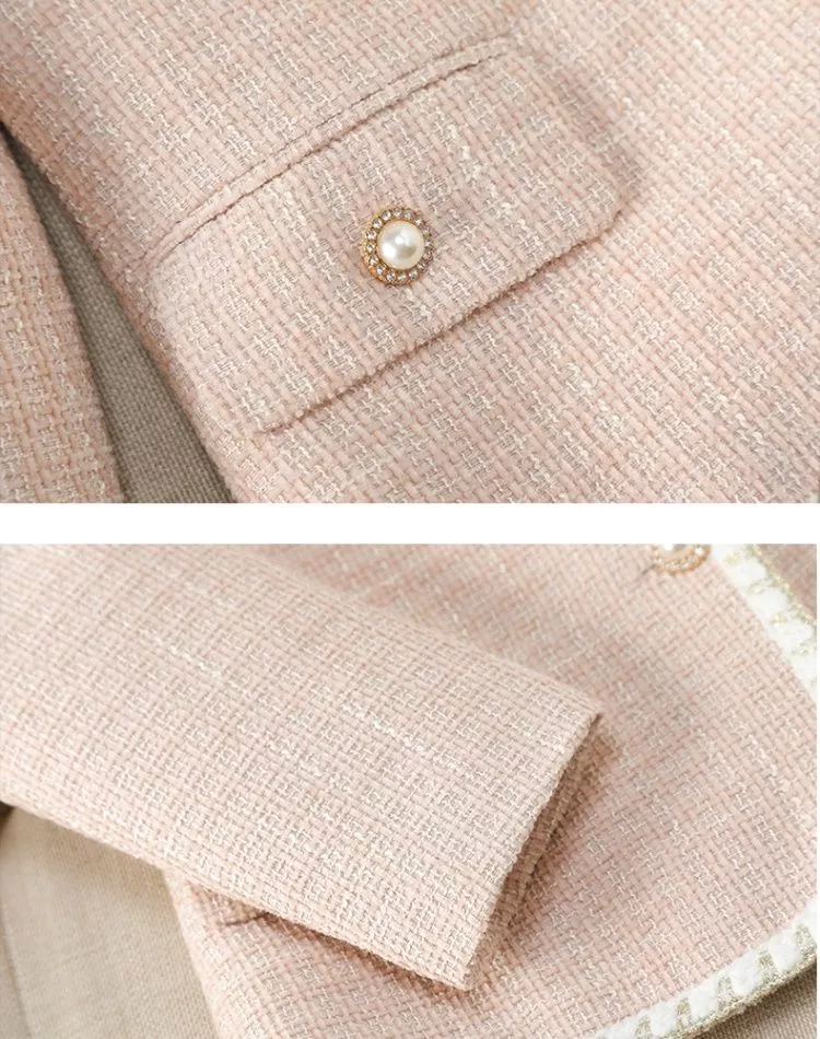 Giacca Tweed Cammello Donna Elegante Con Bottoni Gioiello Corto Chic CF52458