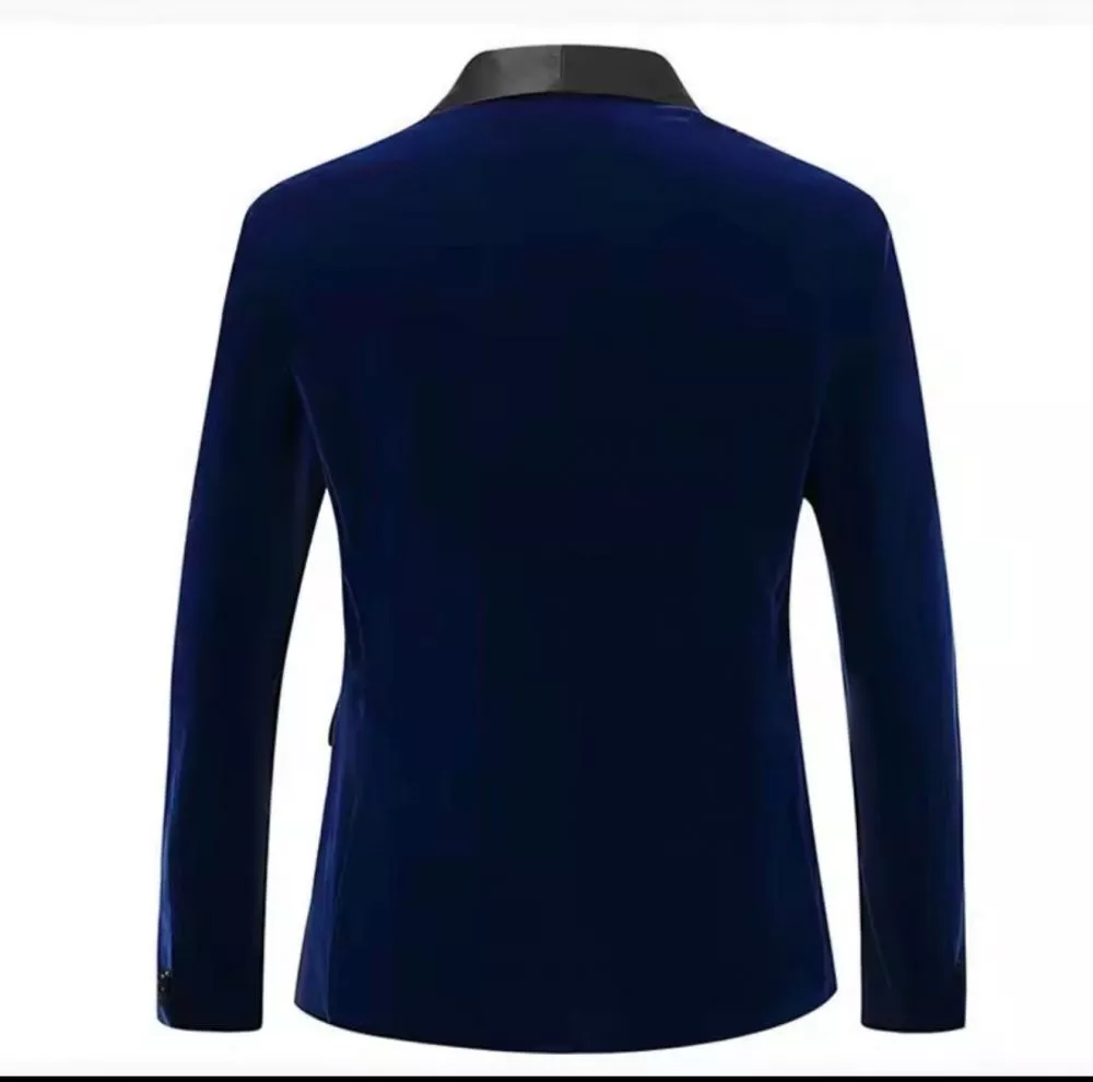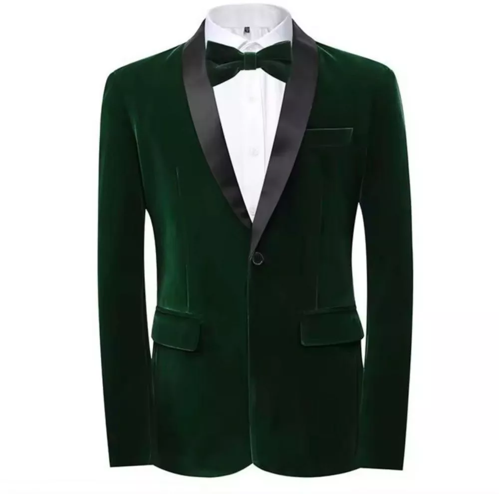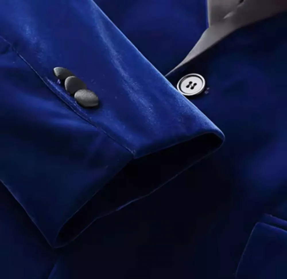 Giacca uomo elegante in velluto dalla texture morbida e luminosa, ideale per cerimonie, eventi formali e serate di livello. Il rever lucido crea un contrasto raffinato che valorizza la linea della giacca, rendendola immediatamente più scenografica e fotografica.