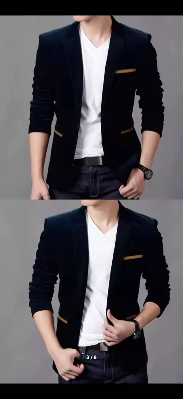 La chiusura monobottone mantiene l’impostazione classica, mentre la struttura leggera la rende perfetta sia con t-shirt sia con camicia, creando outfit adatti a serate, appuntamenti o occasioni in cui un look curato fa la differenza. Un capo essenziale per chi desidera un’eleganza contemporanea facile da indossare.