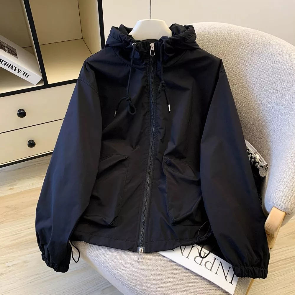 Giacca Nera Tecnica Impermeabile Con Cappuccio Stile Casual Comoda Donna CF58375