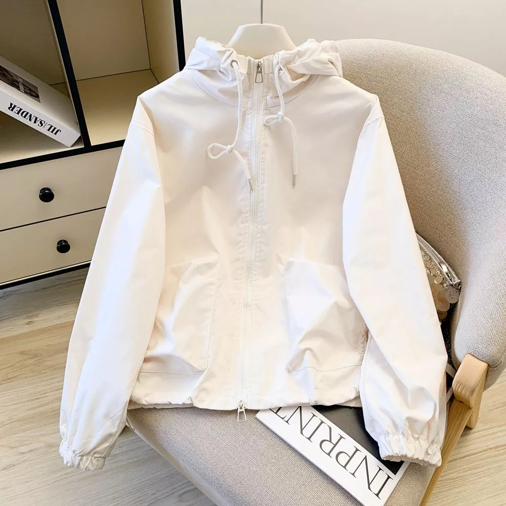Giacca Bianca Tecnica Leggera Cappuccio Stile Casual Quotidiano Donna CF58375