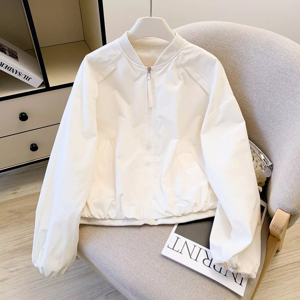 Giacca Bianca Leggera Casual Colletto A Costine Stile Sportivo Donna CF58377