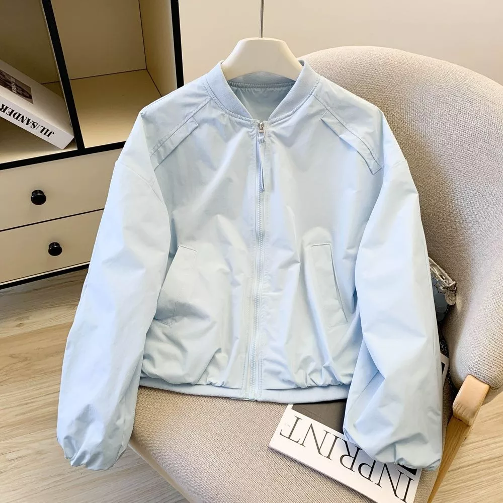 Giacca Azzurra Leggera Casual Colletto A Costine Stile Urbano Donna CF58377