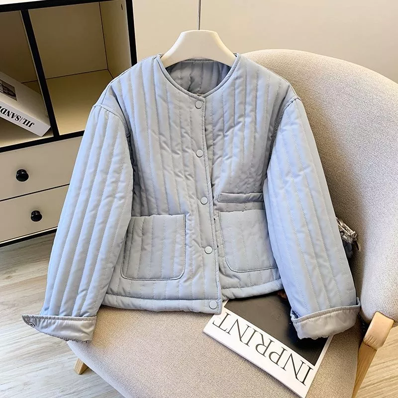 Giacca Trapuntata Azzurra Leggera Calda Stile Casual Donna Inverno CF58379