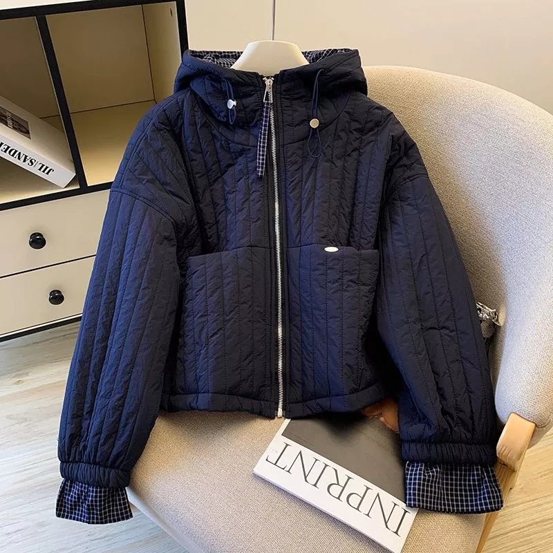 Giacca Blu Marino Trapuntata Con Cappuccio Stile Casual Invernale Donna CF58380