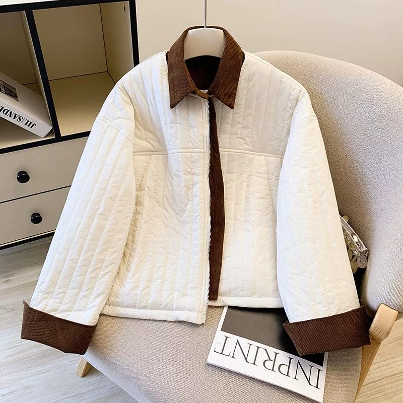 Giacca Trapuntata Beige Colletto Caramello Look Casual Elegante Donna CF58382