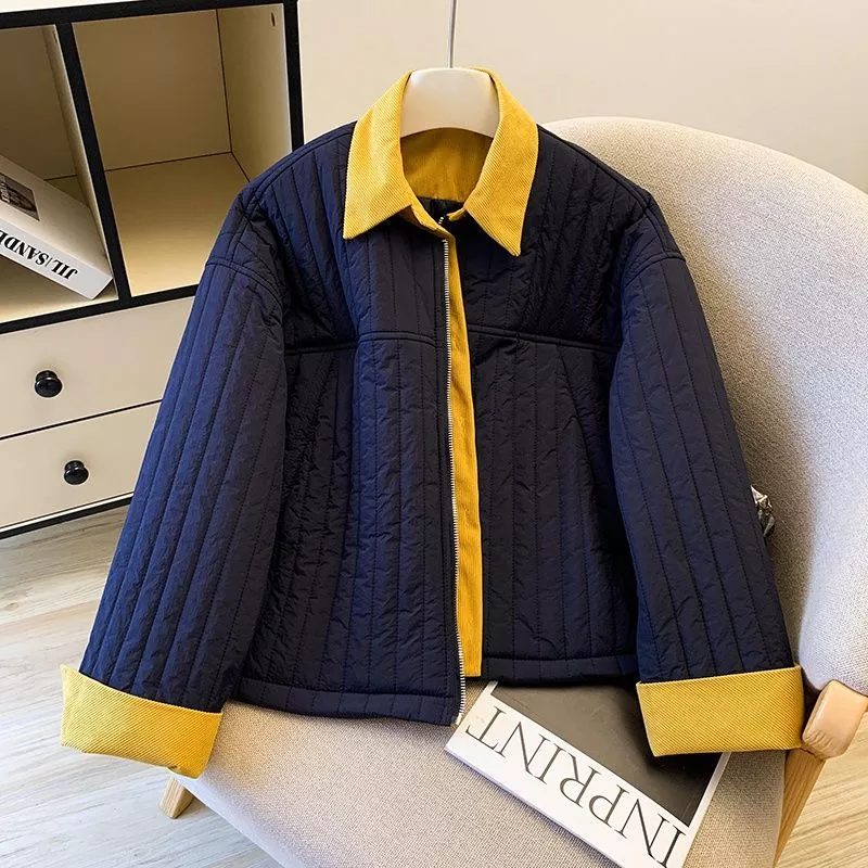 Giacca Trapuntata Blu Notte Con Dettagli Senape Stile Urbano Chic Donna CF58382