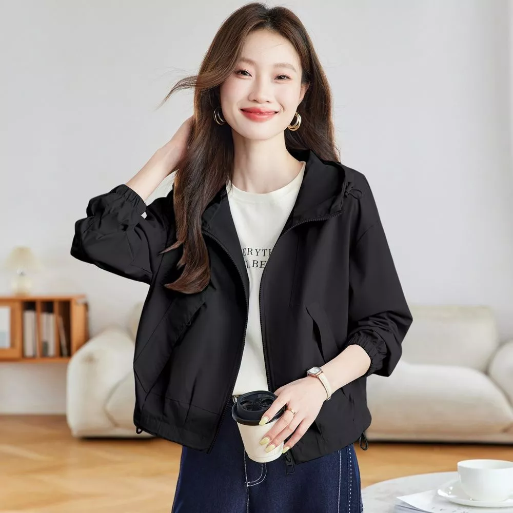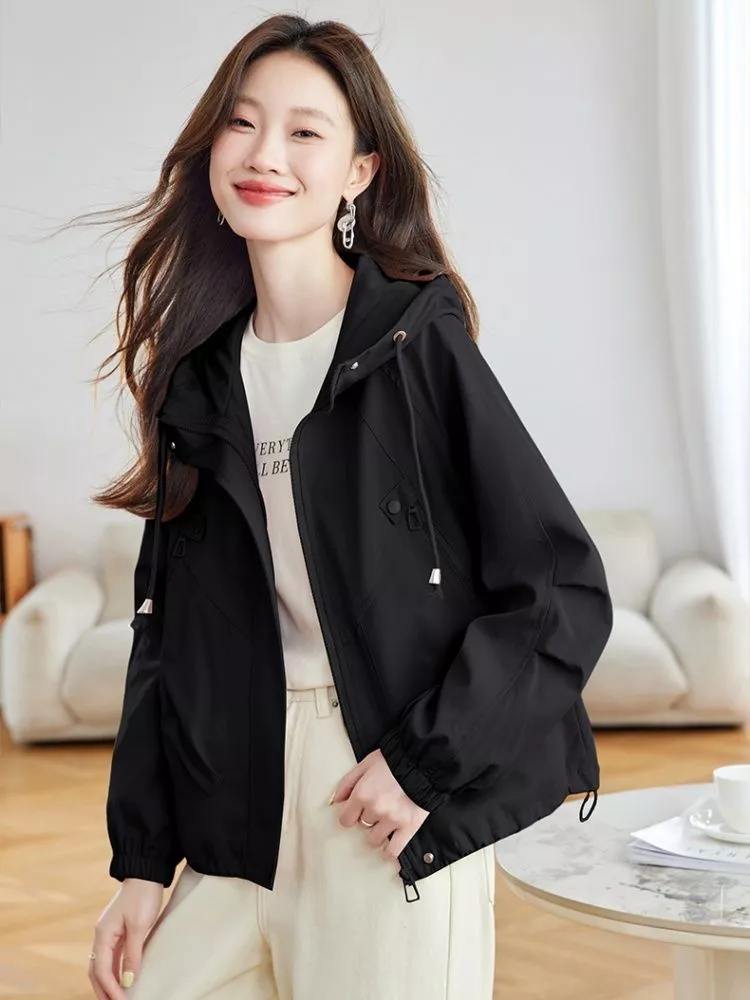 Giacca Donna Leggera Con Cappuccio Casual Nero Antivento Mezza Stagione CF60627