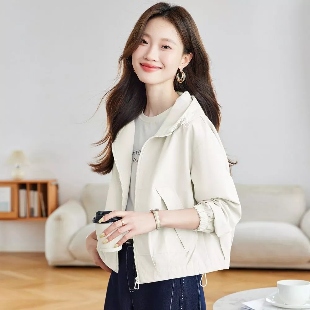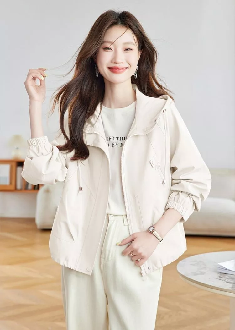 Giacca Leggera Con Cappuccio Antivento Vestibilità Comoda Colore Beige CF60816