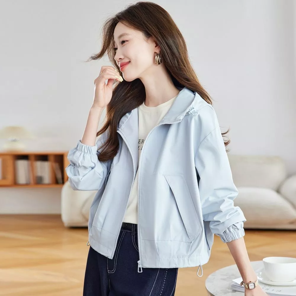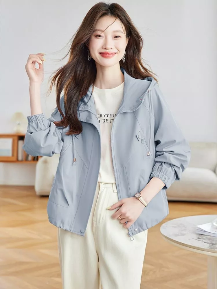 Giacca Donna Cappuccio Leggera Azzurro Chiaro Casual Fresca Primaverile CF60627