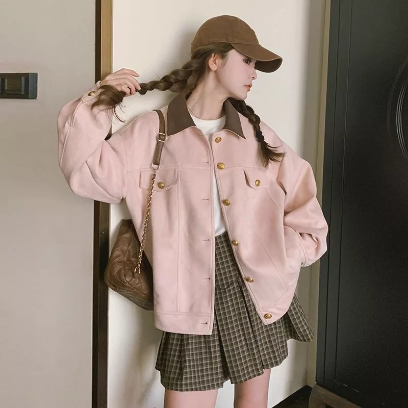 Giacca Donna Leggera Colletto A Contrasto Rosa Velluto Casual Elegante CF60628