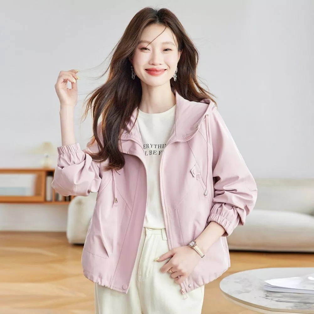 Giacca Leggera Con Cappuccio Antivento Vestibilità Comoda Rosa Viola CF60816