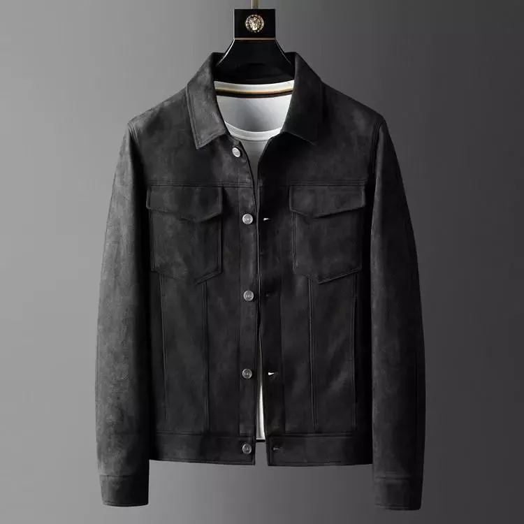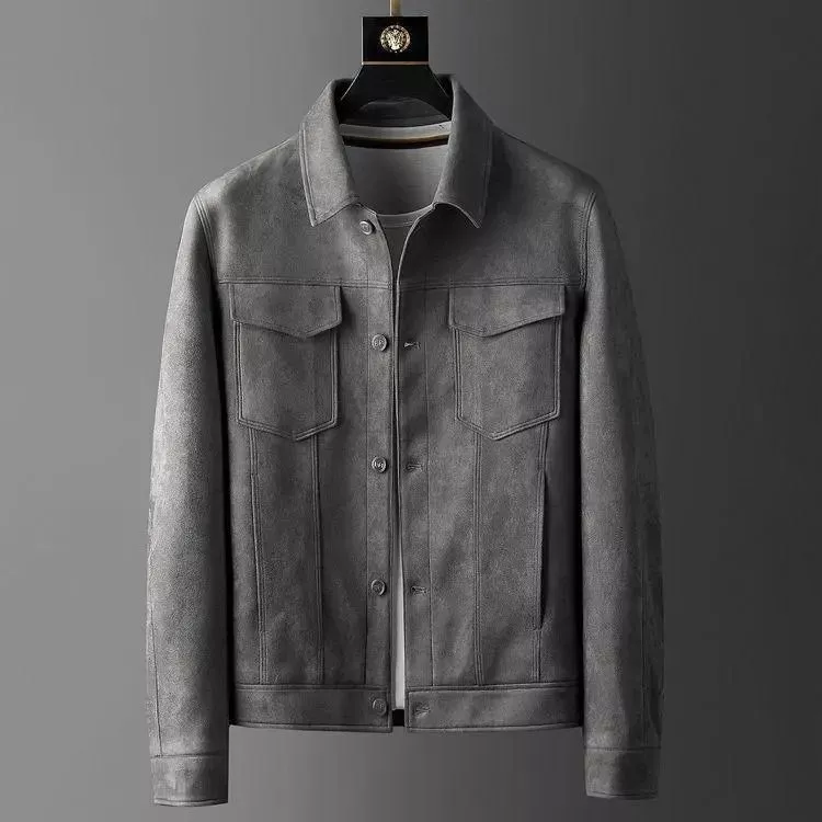 Giacca Uomo Grigio Effetto Camoscio Casual Chic Con Bottoni Stile Moderno 15289