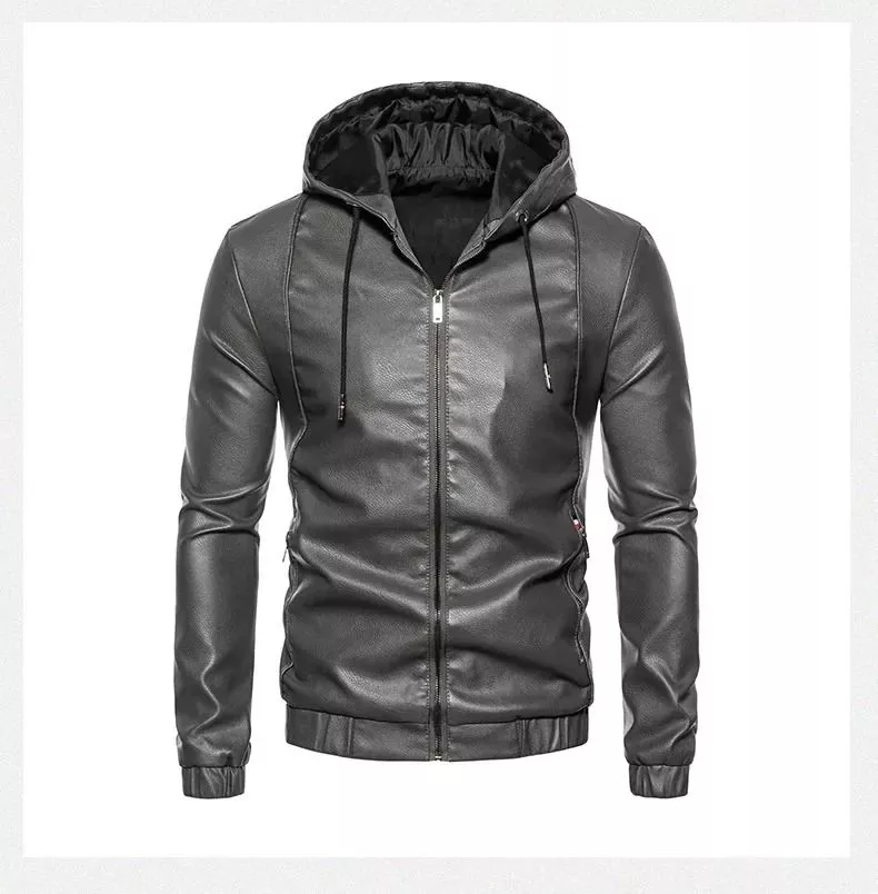 Giacca Uomo Effetto Pelle Grigia Con Cappuccio Moderna E Versatile CF52706