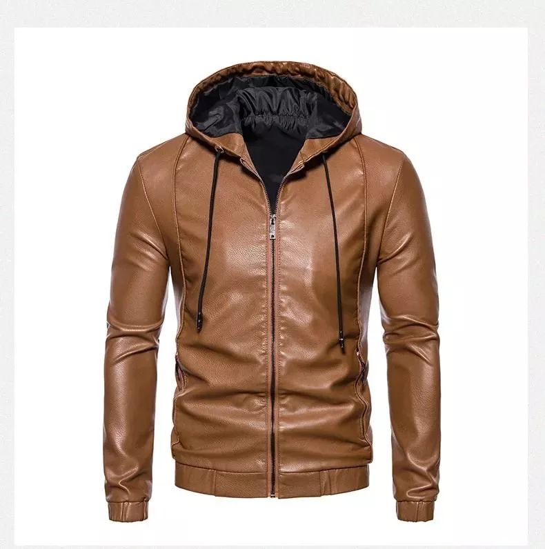 Giacca Uomo Effetto Pelle Cammello Con Cappuccio Casual Chic Autunnale CF52706
