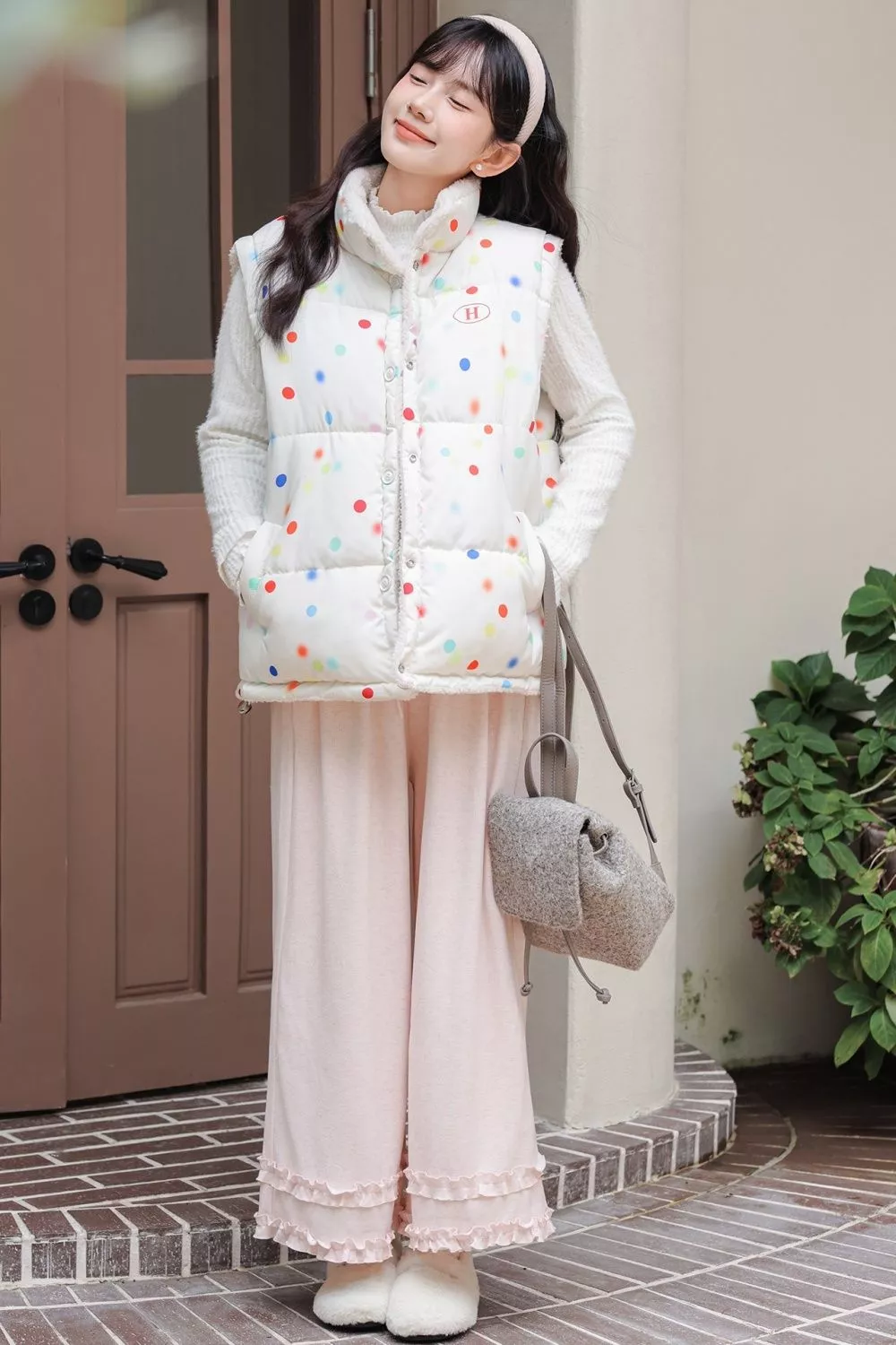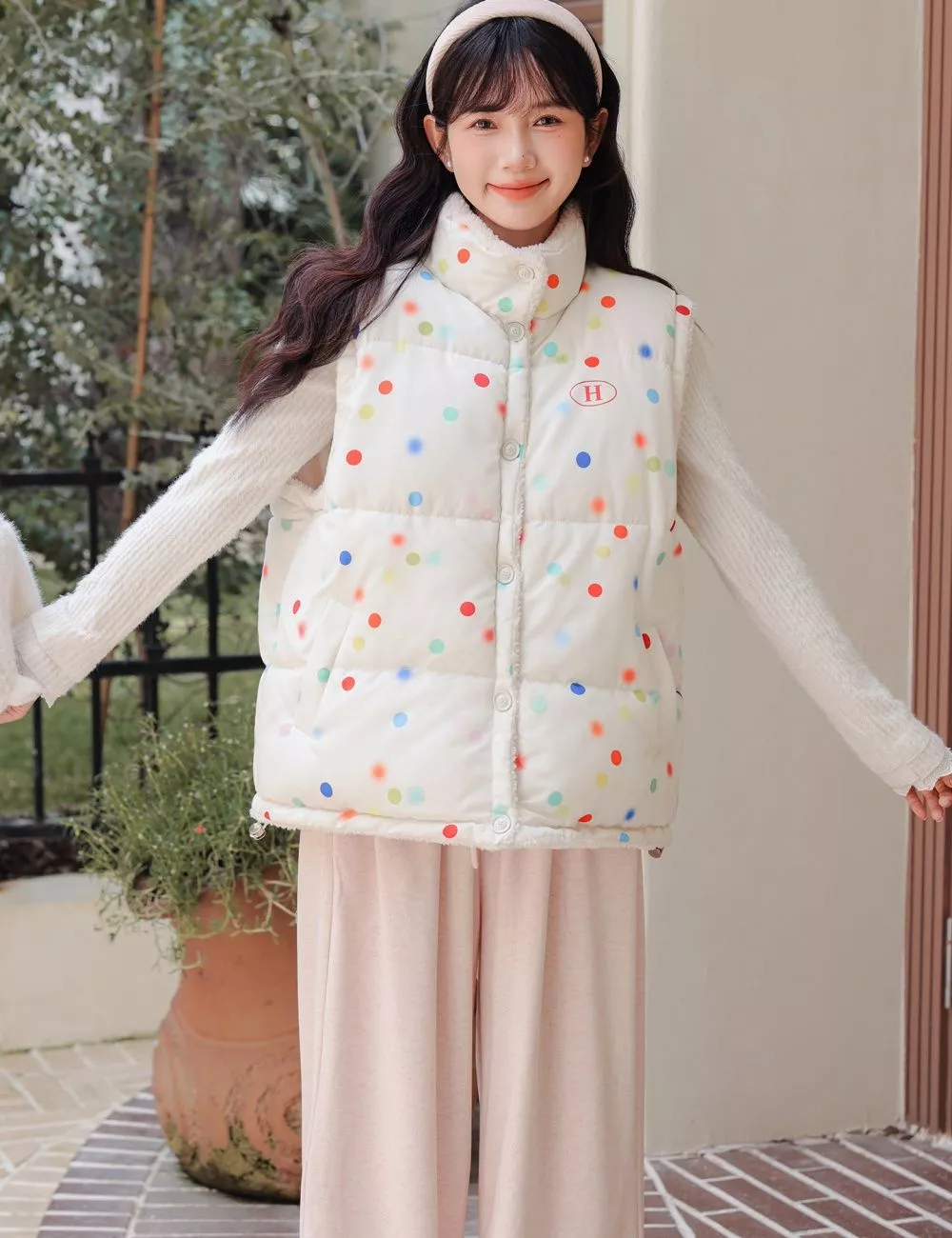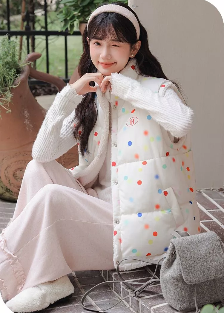Gilet Avorio Imbottito Morbido Pois Multicolor Caldo Elegante Look Donna CF58794