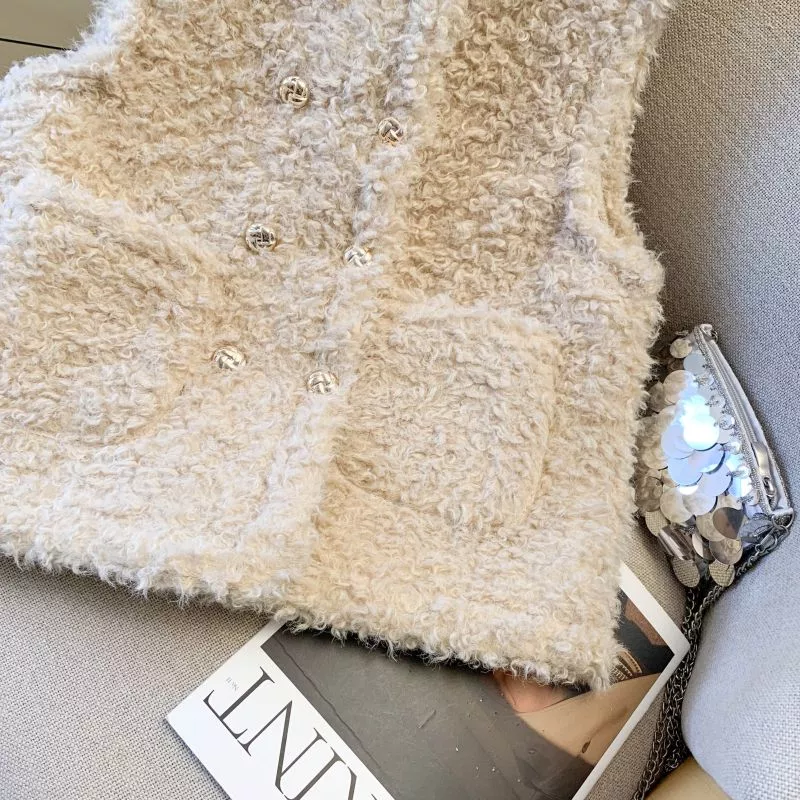 Gilet donna smanicato dal design raffinato, realizzato in tessuto morbido effetto peluche, ideale per completare outfit eleganti o casual chic.