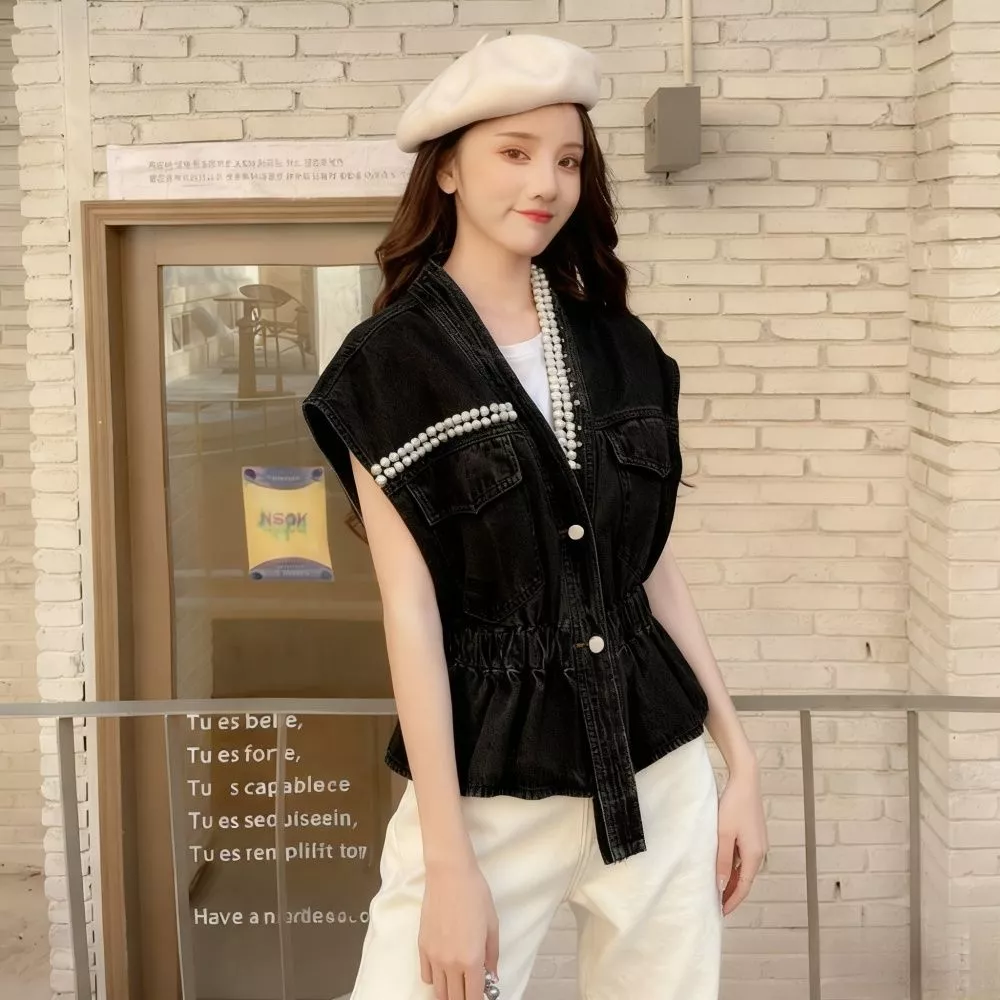 Gilet Denim Donna Con Dettagli Decorativi Vita Regolabile Jeans CF62300